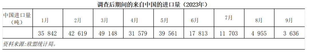 委員會發現,自2023年第二季度以來,從中國的進口量下降,交易量增加的趨勢已經停止: